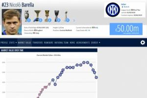 此次巴雷拉身价下跌1000万欧,德转的解释是:球员状态虽然起伏不定,但逐渐步入职业生涯的暮年,在转会市场中的处境会愈发艰难。