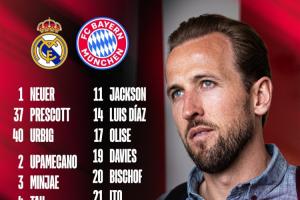 体育资讯04月06日讯 拜仁官方公布了欧冠1/4决赛对阵皇马首回合的球员名单,凯恩回归领衔。