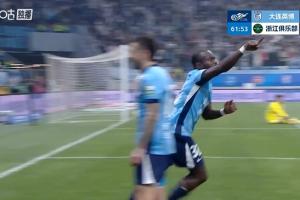 体育资讯04月10日讯 中超第5轮,大连英博vs浙江。比赛第62分钟,大连英博2-0扩大领先!阿奇姆彭半单刀推射远角破门。