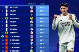 德转列皇马球员19次欧冠帽子戏法:C罗7次、本泽马4次、姆巴佩3次